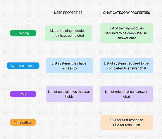 It seemed to me that if we could factor those properties into the prioritisation and assignment logic, we could get chats to the right people at the right time without all this manual sorting.