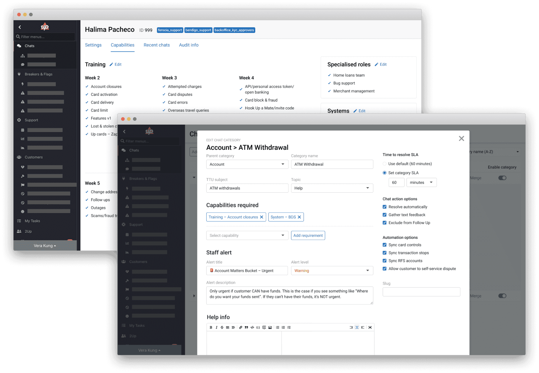 The Up digital bank platform was built from the scratch, and that included all the software for managing customer support via in-app chat.